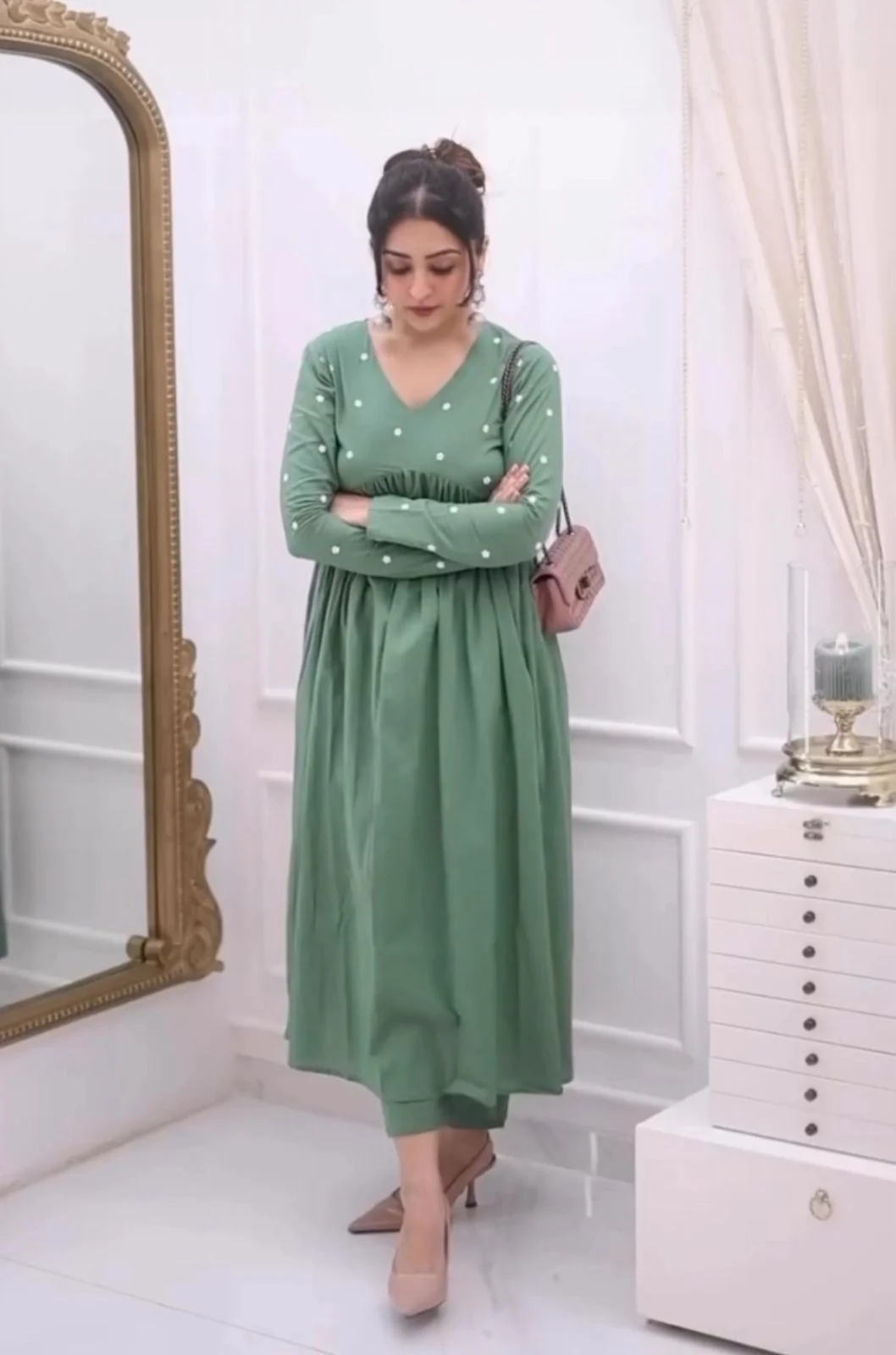 "Elevate your wardrobe with our stunning Roman Silk Co-Ord Set, designed for ultimate comfort and style. Crafted from luxurious Roman silk fabric, this ensemble features a charming accent and a perfect blend of elegance and sophistication. The Alia cut neckline adds a touch of glamour, while the 20" sleeves provide a comfortable fit.